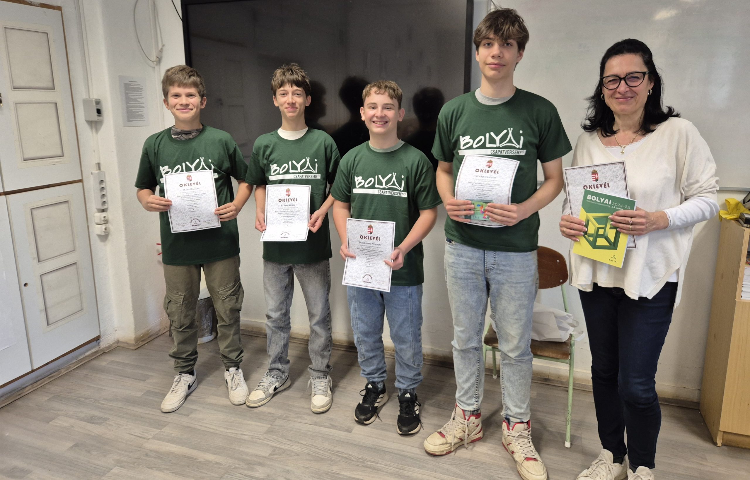 A nyolcadik évfolyamosok versenyében a „67AdrianBarberShop” csapatunk (Szabó Csanád, Máté Balázs, Mészáros Nimród, Szabó Ádám) megyei 6. helyezést ért el. Felkészítő tanáruk Jutasi Szilvia. Gratulálunk!