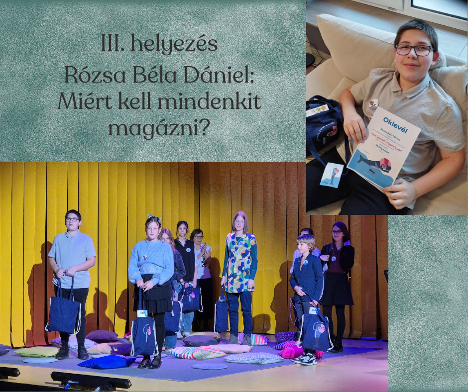 A gyerekeket a pályázatra Bank Eszter tanárnő és Novák Balázs tanár úr készítette fel.