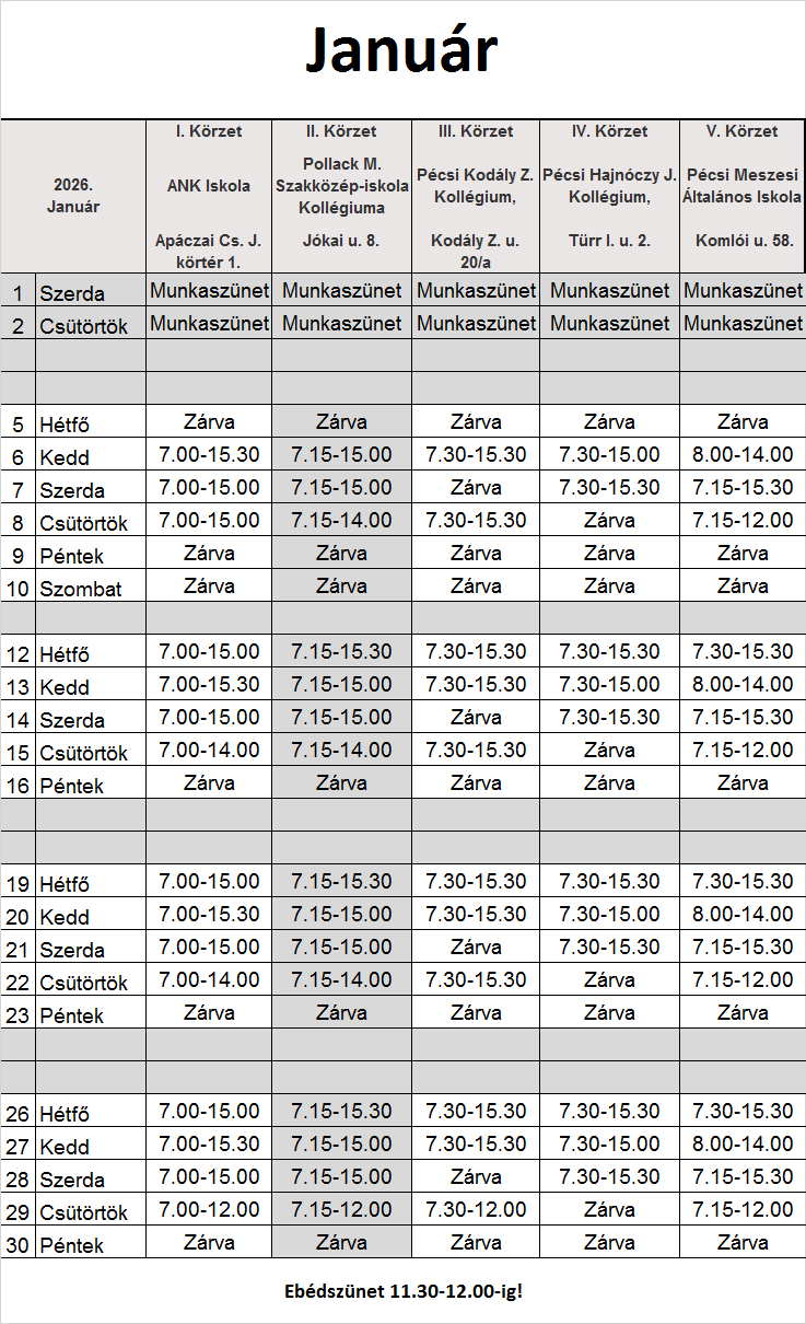 Pénztárak nyitvatartása: